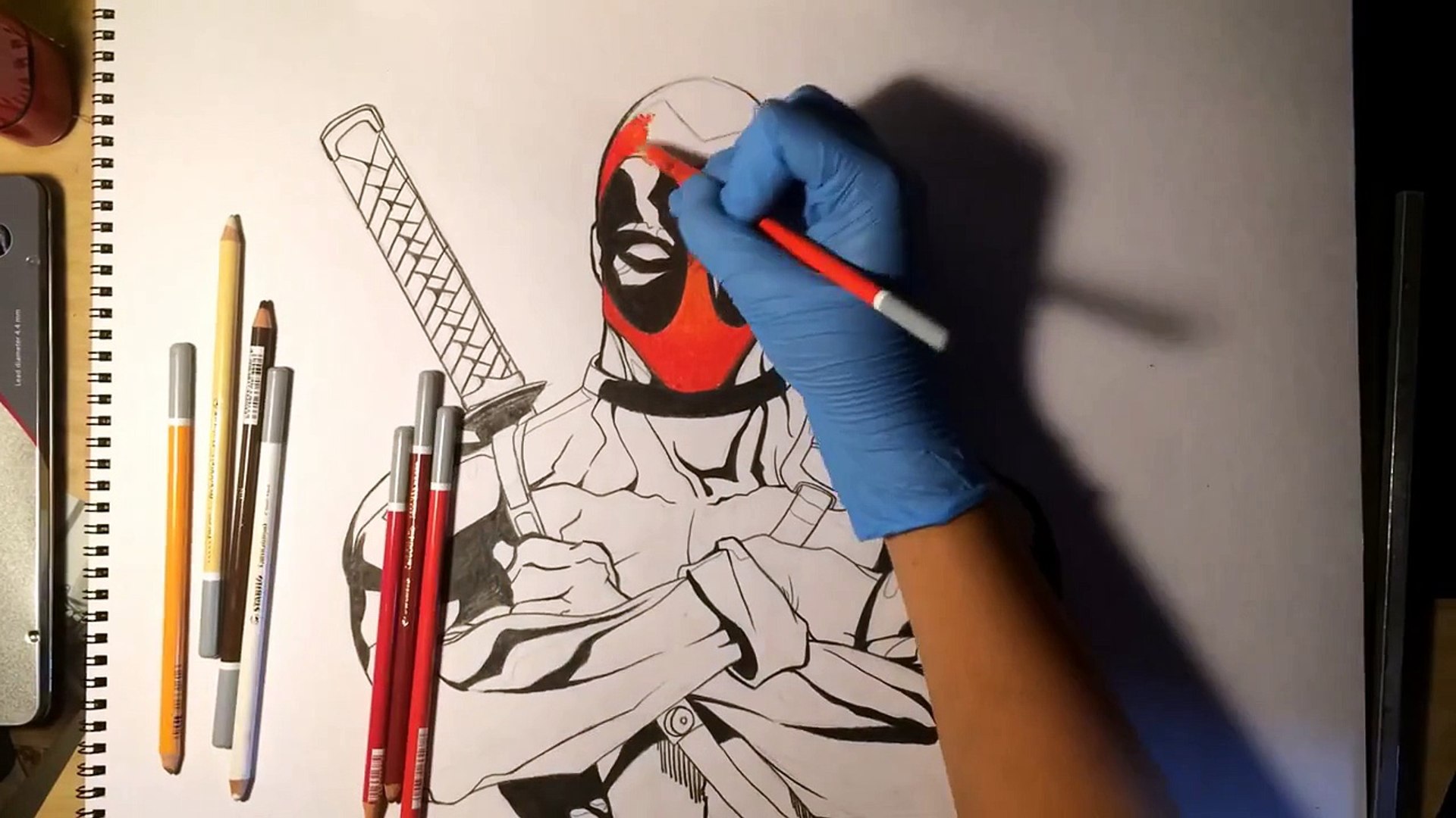 You may also want to use red and black crayons markers or colored pencils to shade your drawing of deadpool.