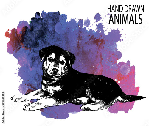 Cute German Shepherd Puppy Is Lying On His Stomach Drawing