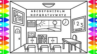 How To Draw A Scenery Of Classroom Step By Step Very Easy